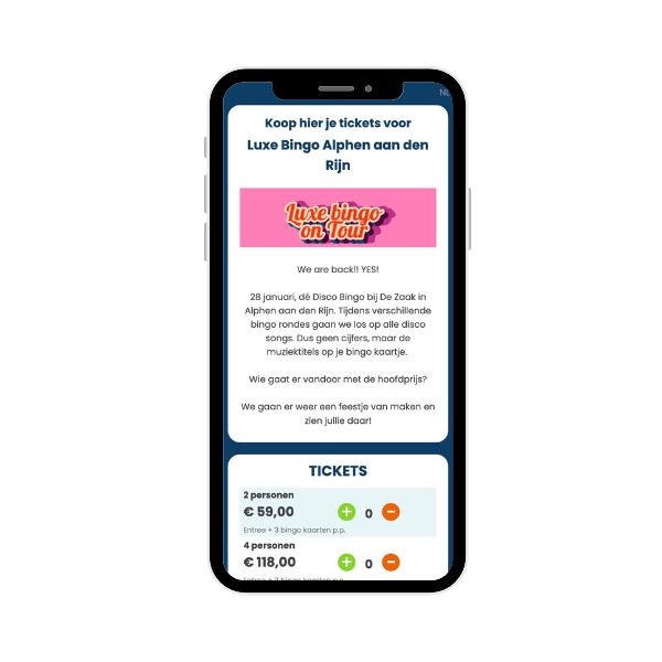 Vraag een gratis demo aan en ontvang binnen één dag een kant-en-klare ticketshop voor jouw horecaevent.